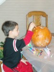 Fall is definitely my favorite season: the crisp air, crunch of leaves under my shoes, and the excuse to put on a sweater or scarf. I also love anything to do with pumpkins- eating, carving, candle lighting- you name it! Last week, Ayden and Ben reminded me how fun it is to simply paint a pumpkin.